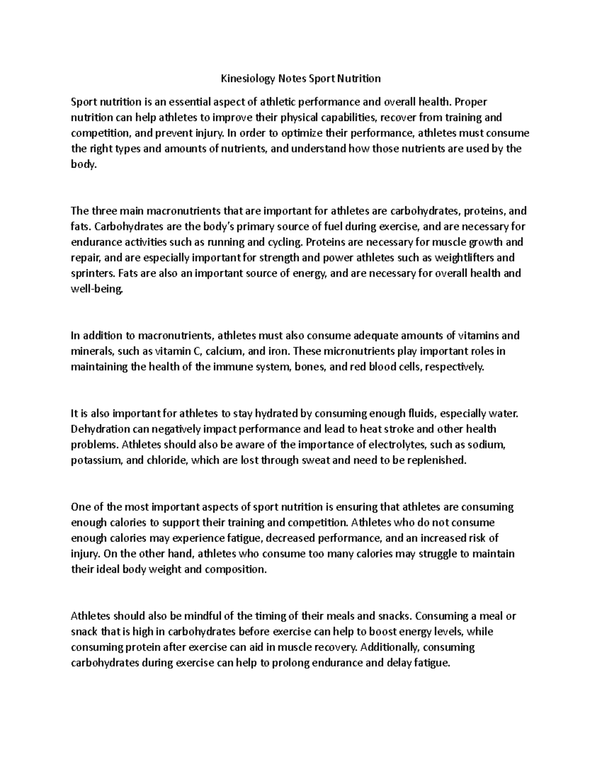 Kinesiology Notes Sport Nutrition Proper nutrition can help athletes to improve their physical